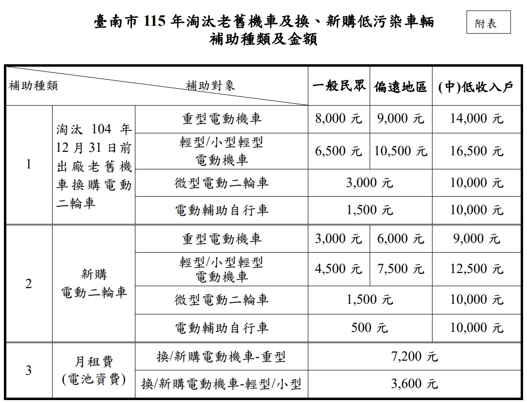 請依「臺南市 115 年淘汰老舊機車及換、新購低污染車輛補助方案」公告為準。